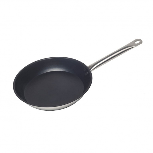 Сковорода голландского бренда Presto Ware. Изготовлена из пищевой нержавеющей стали, подходит для индукционной плиты. С антипригарным покрытием. Удобная ручка с отверстием для подвешивания. Размер - 30 см
