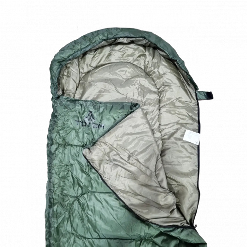 Спальный мешок Totem Hunter Бюджетный трехсезонный (весна, лето, осень) спальный мешок TOTEM HUNTER, конструкции кокон. Для туристов, рыбаков, охотников и любителей отдыха на природе, которые хотят получить максимум комфорта при минимальных затратах. В качестве утеплителя в данной модели используется проверенный и хорошо всем знакомый Hollofiber HiTech Hollofiber волокна которого имеют полый канал и спиралевидную форму, позволяющую удерживать большой объем воздуха и отлично сохранять тепло. Спальник не пропускает и не впитывает влагу, даже в условиях повышенной влажности сохраняет тепло. Материал спальника отлично восстанавливается после сжатия, занимает минимальный объем, гипоаллергенен и не токсичен. Особенности: Мягкий утеплитель HiTech Hollofiber Плотная стропа вдоль двусторонней молнии предотвращает закусывание ткани Удобная система стяжек позволяет максимально сохранить тепло внутри спальника Анатомическая форма спальных мешков экономит вес Спальные мешки выпускаются с правосторонней и левосторонней молниями и могут состегиваться между собой. Характеристики: Конструкция: кокон ( мумия) Вес: 1,3 кг Температурный режим: +10/+5/-5 Размер: 220 х 80 х 55 см. Размер в упакованном виде: 38 х 19 см. Внешний материал: полиэстер RipStop 170Т Внутренний материал: Полиэстер 170T cire Утеплитель: Hollofiber 1 x 250 г/м2 Количество слоев утеплителя: 1 Упаковка: упаковочный мешок Цвет: Зелёный