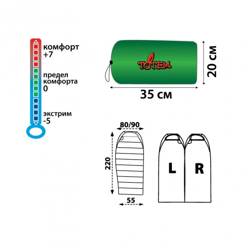 Детальні характеристики Спальный мешок кокон Totem Hunter правый Зелёный (UTTS-004-R).