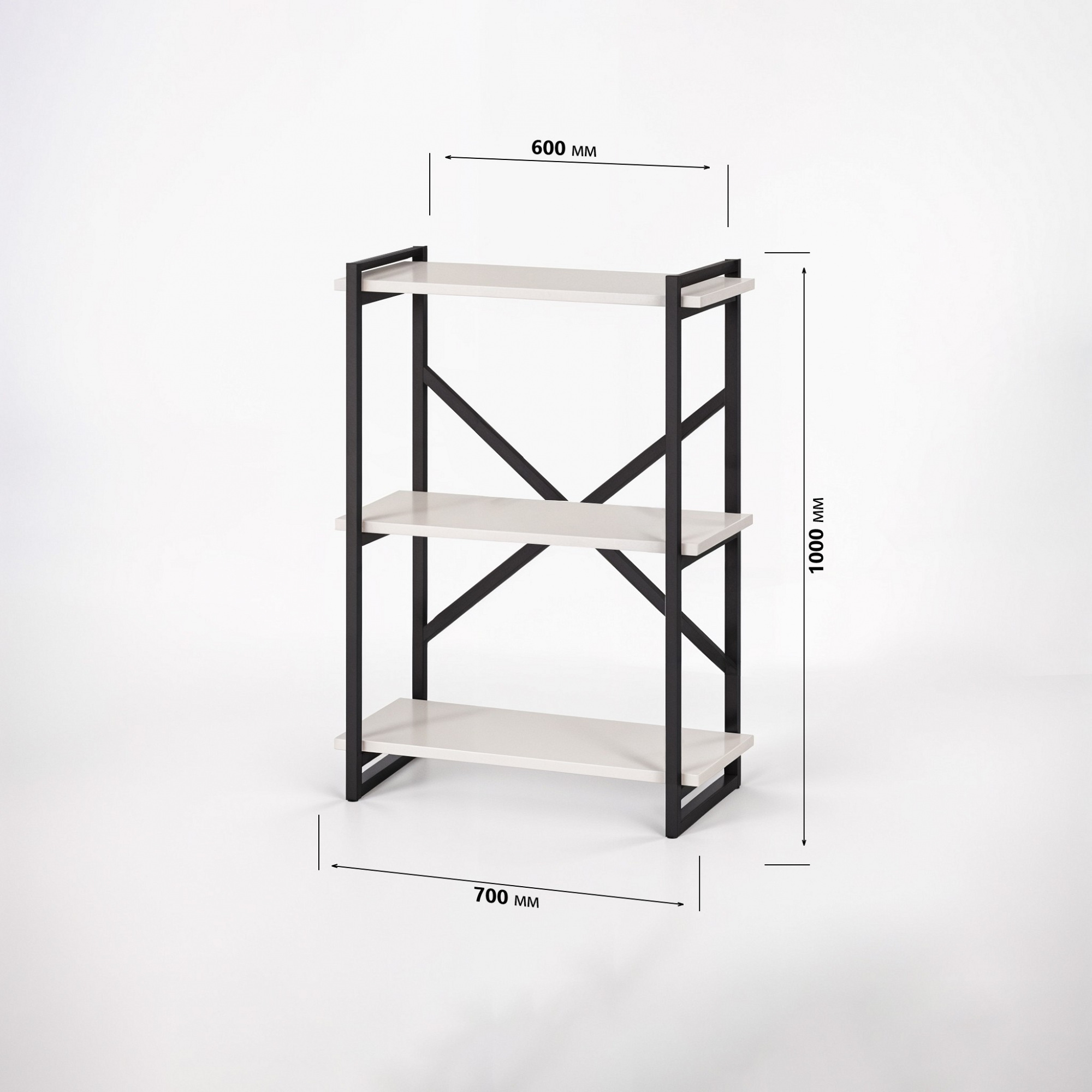 Стеллаж в стиле лофт на 3 полки Ant-3 700х300х1000 мм Белый, Нимфея Альба (26629408)