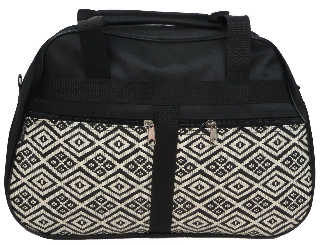 Передняя сторона сумки украшена оригинальным принтом.