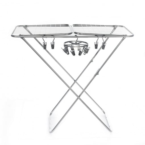 Вес сушилки составляет 3,7 кг, что отличает её от аналогов, и свидетельствует об использовании производителем качественных материалов - трубы Ø 16 мм и прутка Ø 3 мм. Это обеспечит максимально длительный срок эксплуатации. Устойчивые ножки не царапают пол. Сушилка легко складывается, удобна как в использовании, так и при хранении или транспортировке. Сушилку можно использовать как в помещении, так и на улице. Максимальная высота - 106 см. Габариты в сложенном виде 130 х 52 х 5 см. Не требует специального ухода.