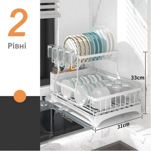 Конструкция: двухъярусная сушка для посуды, компактная и вместительная.
