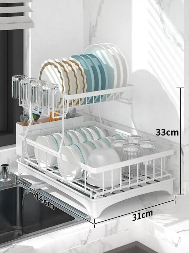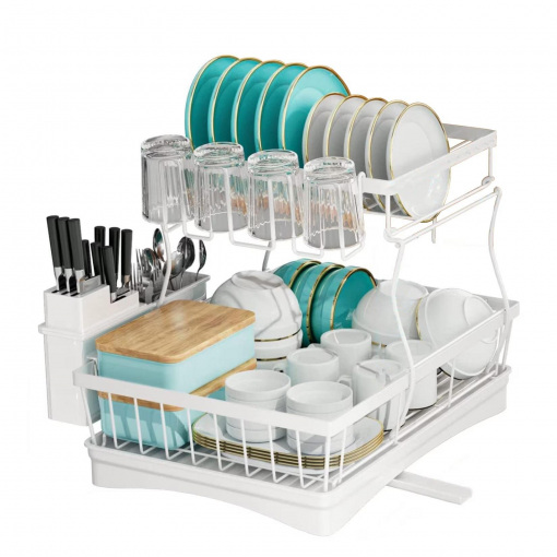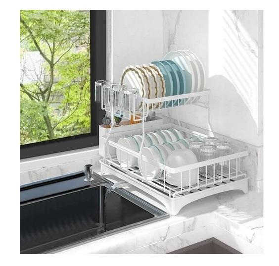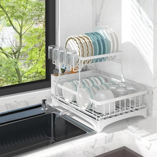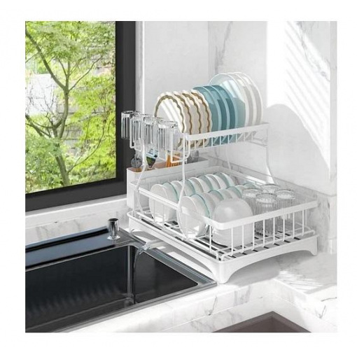Любая кухня нуждается в упорядоченном пространстве, и двухъярусная сушка для посуды станет отличным решением для хранения тарелок, чашек, вилок и ножей в порядке. Она оснащена съемным поддоном для сбора воды, боковым держателем столовых приборов и дополнительными крючками для чашек. Благодаря продуманной конструкции эта сушка поможет компактно организовать место для кухонной посуды.