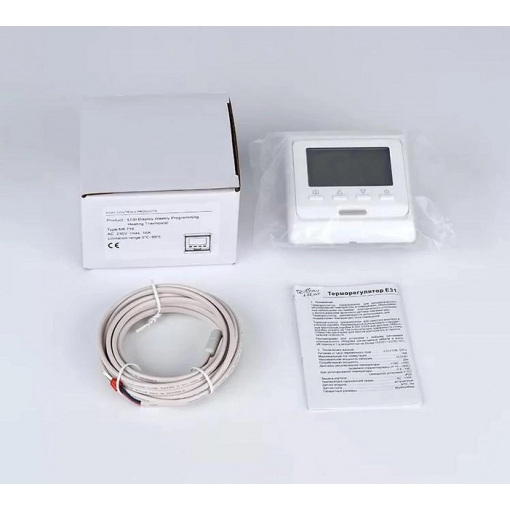 В комплекте с регулятором поставляется выносной температурный датчик длиной 3 метра. Номинал термодатчика - 10 кОм при 25°С. Датчик монтируется непосредственно в пол в гофротрубку 9/12 которая в комплект к терморегулятору не входит.