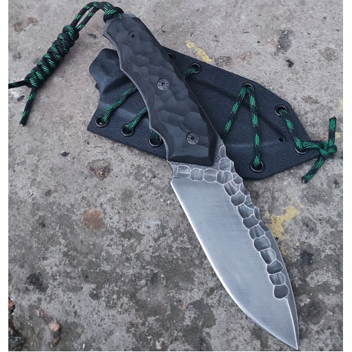 Нож имеет средние размеры. Он обладает большой прочностью и может выдерживать значительные нагрузки за счет толщины обуха и конструкции. Ножом легко выполнять лагерные работы, колоть небольшие поленья, резать ветви. Лезвие ножа сделано из нержавеющей стали х12мф, закаленное в 60-61HRC и хорошо заточено.