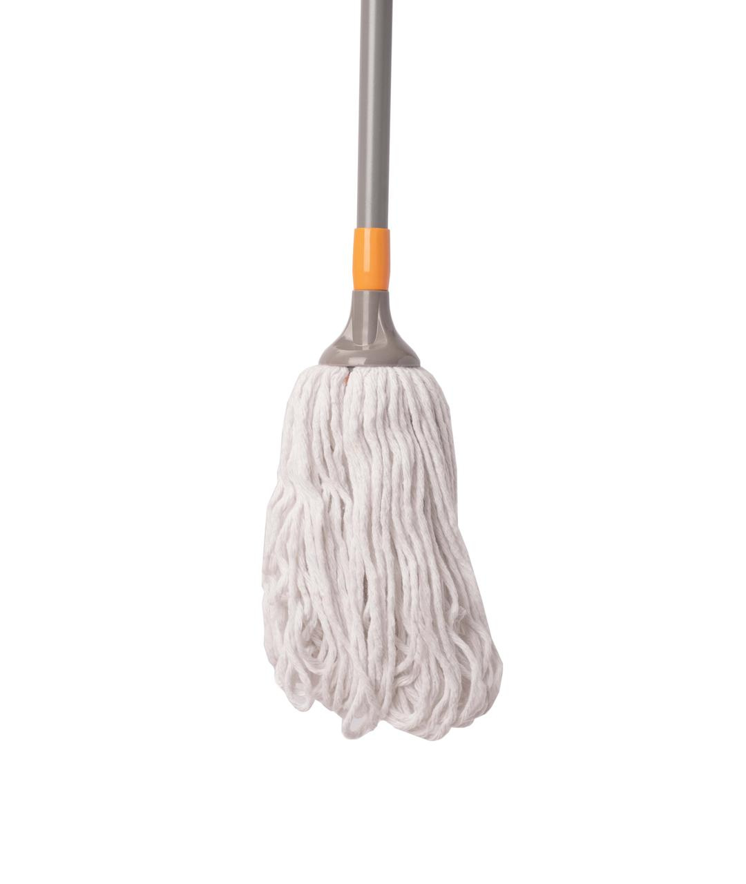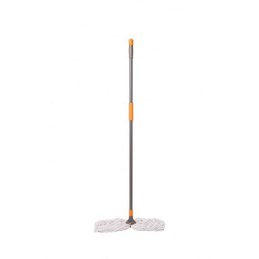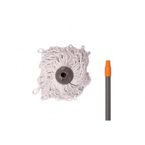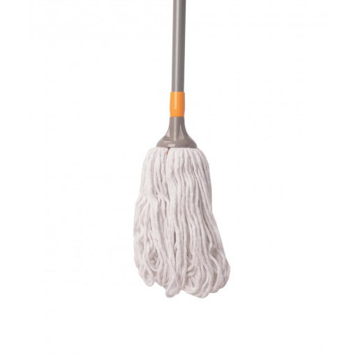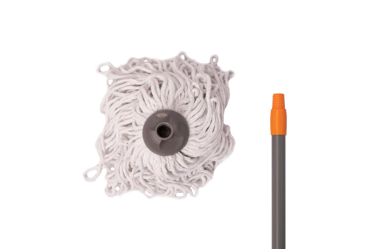 Швабра для пола "KORNEL" - предназначена для мытья кафеля, линолеума, ламината, паркета от разного рода загрязнений. Благодаря хлопковой пряже хорошо собирает и удерживает значительное количество воды с поверхности пола и хорошо собирает грязь. Швабра изготовлена из достаточно прочного металла и пластика, что обеспечивает простоту и надежность в эксплуатации. Длина ручки 140 см. Хлопковая насадка имеет длину 25 см., диаметр 15 см. Очень удобна и надежна в использовании.