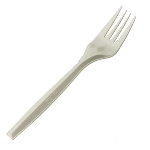 Одноразовая вилка белого цвета. Прочная и крепкая, она выдержит даже сильный нажим. Изготовлена из экологически чистых материалов - кукурузного крахмала. Размеры: 17 см.