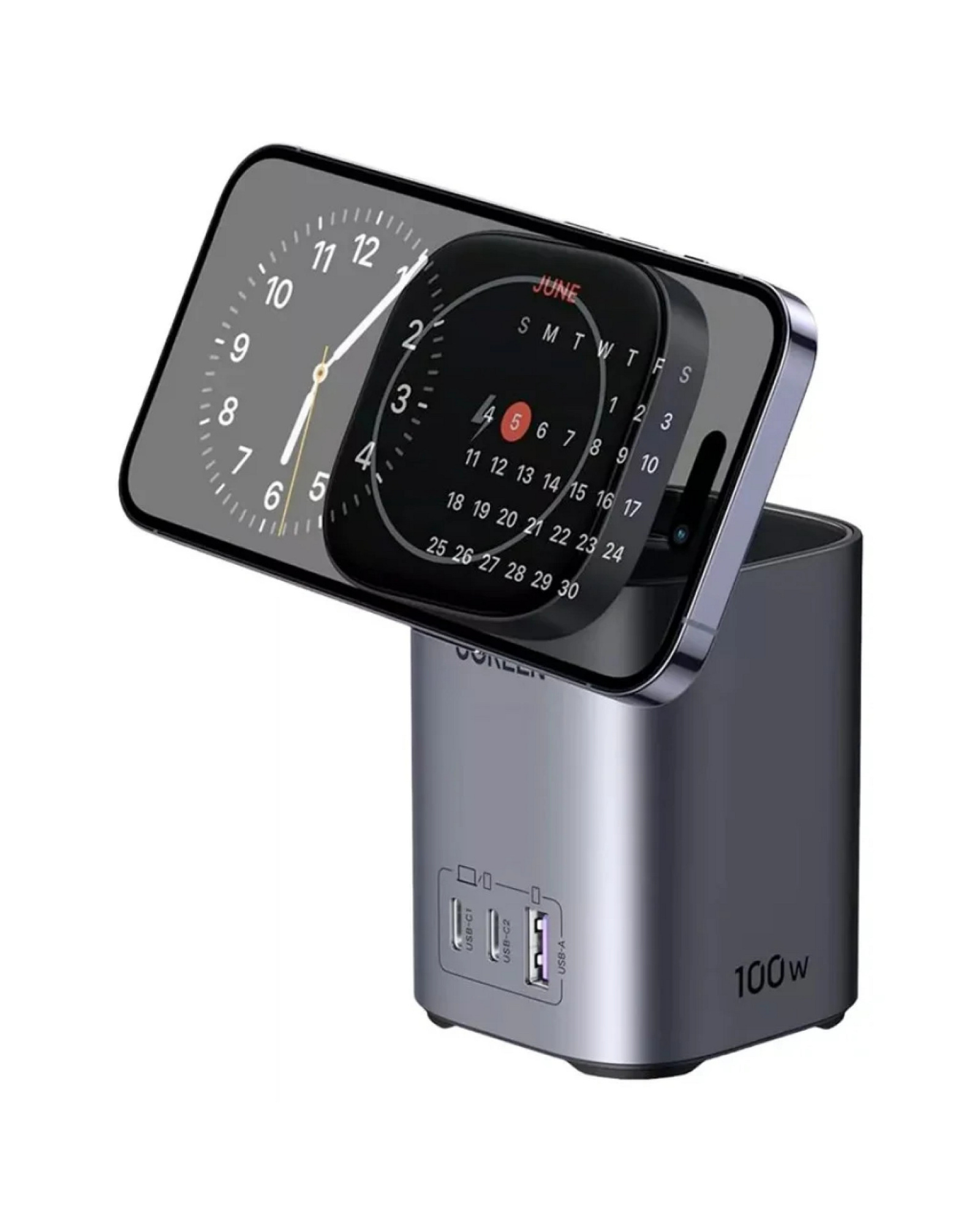 Зарядная станция UGREEN CD342 100W 2-в-1 GaN Charging Station EU — это универсальное решение для быстрой, надёжной и многофункциональной зарядки. Использование технологии GaN и суммарной мощности до 100 Вт позволяет одновременно заряжать несколько устройств: от ноутбуков и планшетов до смартфонов и аксессуаров.