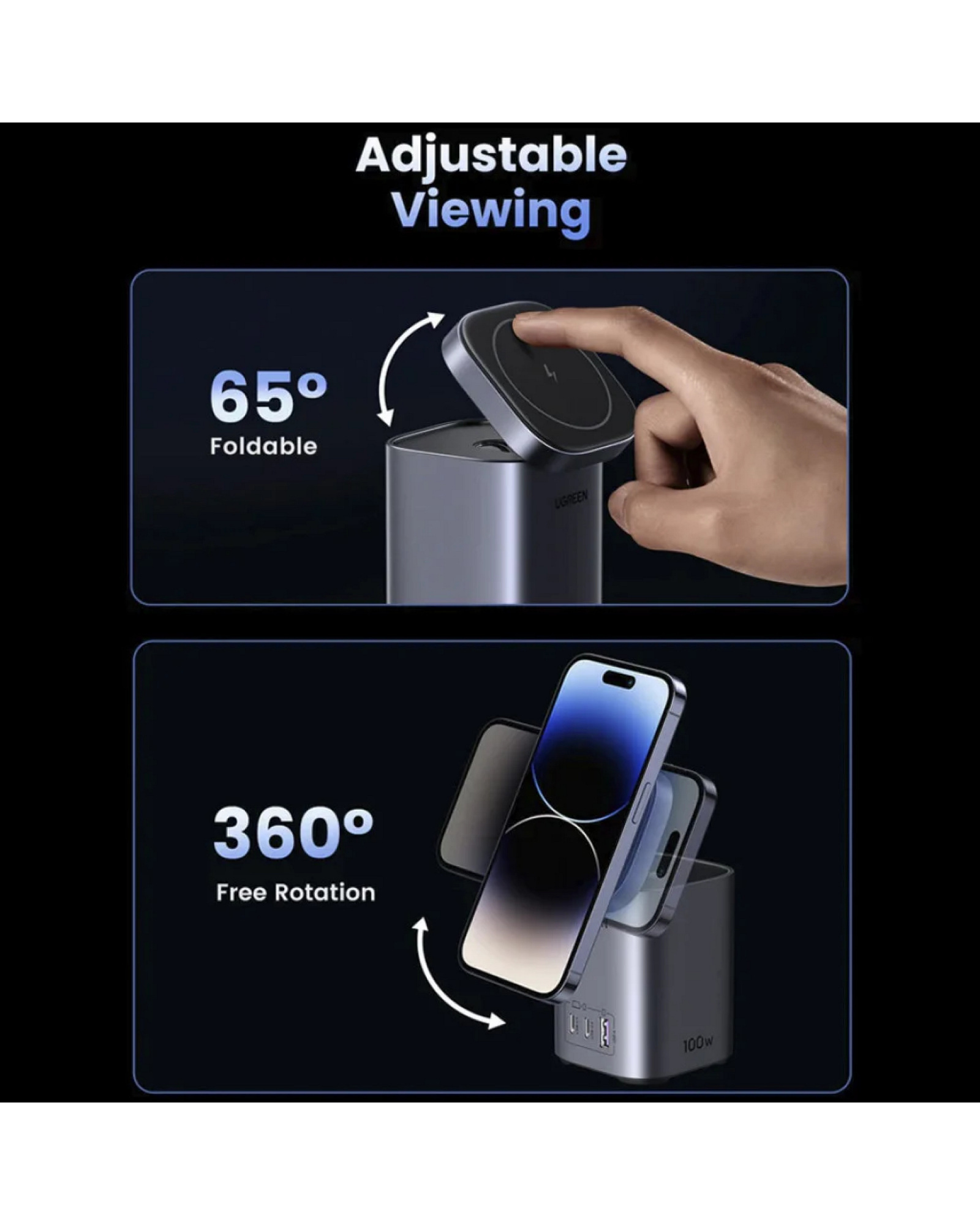Детальні характеристики Зарядная станция Ugreen CD342 100W 2-in-1 GaN Charging Station EU Space Gray.